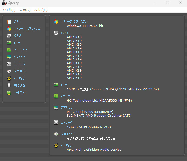 Speccyで見た機器情報