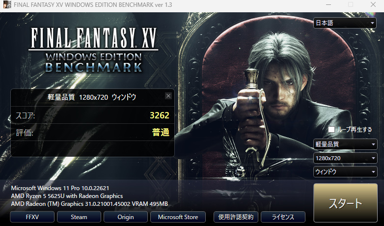 ファイナルファンタジーXV ベンチマークスコア