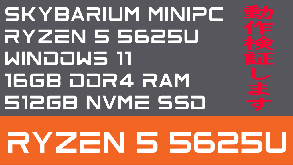 今回は、「SkyBarium ミニPC Ryzen 5 5625U買いました (箱の中身はなんだろな編)」の続編記事となります。前回はSkyBarium ミニPC Ryzen 5 5625Uの外観と中身を紹介しましたので、今回は動作検証をしてみようかと思います。