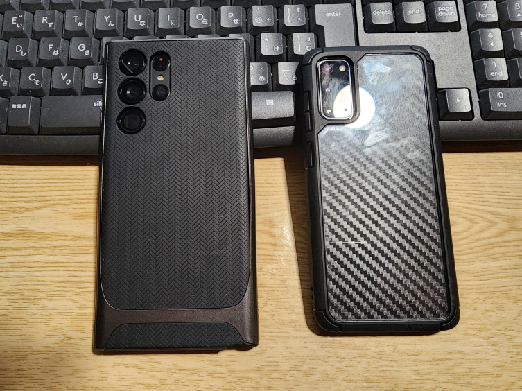 下の画像はS22 ultraとS20のケースをつけたときの大きさの比較です。今まで大きいスマホを持ったことがなかったので大丈夫かなと思う気持ちもありましたが、画面も見やすくなったし一回りくらい大きくなりましたが特に問題もなく使用しております。